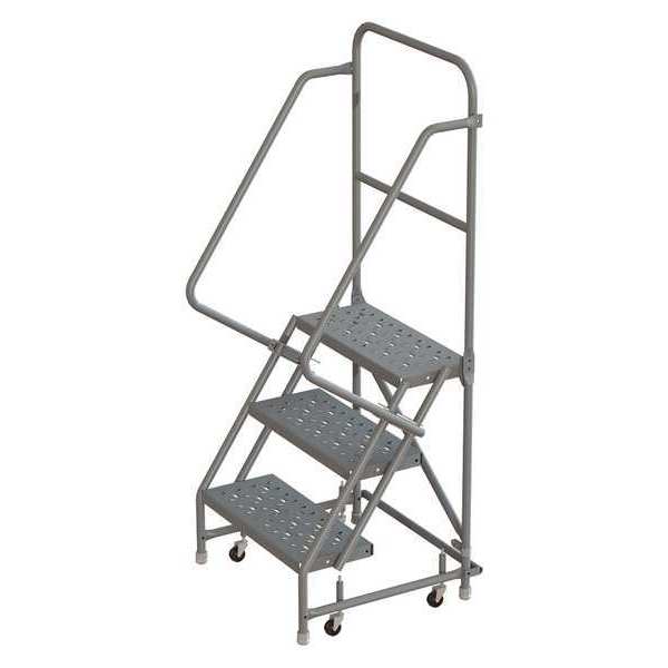 66 in H Steel Rolling Ladder, 3 StepsSKU G3373609Categories Material HandlingDescription Rolling Ladder, Material Steel, Platform Height 30 in, Handrails Included Yes, Handrail Height 36 in, Overall Height 66 in, Number of Steps 3, Assembled, Load Capacity 450 lb, Step Tread Perforated, Platform Depth 10 in, Platform Width 16 in, Bottom Width 20 in, Base Depth 27 in, Overall Width 20 in, Climbing Angle 56 Degrees , Step Depth 7 in, Step Width 16 in, Ladder Actuation Spring-Loaded Casters, Finish Powder Coated, Color Gray, Standards ANSI, OSHA, Includes Crutch TipsgraingerSKU: 45FG18, mscSKU: , zoro_no: G3373609, mongo_id: 65bbedfe526e052139ae2492