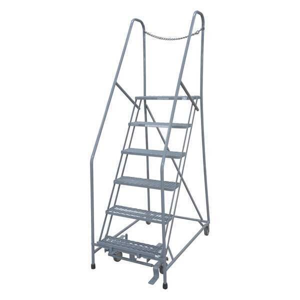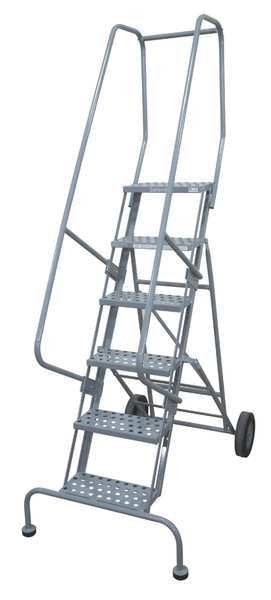 90 in H Steel Rolling Ladder, 6 StepsSKU G0995648Categories Material HandlingDescription Rolling Ladder, Material Steel, Platform Height 60 in, Handrails Included Yes, Handrail Height 30 in, Overall Height 90 in, Number of Steps 6, Assembled, Load Capacity 450 lb, Step Tread Expanded Metal, Platform Depth 10 in, Platform Width 24 in, Bottom Width 30 in, Base Depth 46 in, Overall Width 30 in, Climbing Angle 59 Degrees , Step Depth 7 in, Step Width 24 in, Ladder Actuation Foot Activated Step Lock, Finish Powder Coated, Color Gray, Standards ANSI, OSHA, Rear Exit YesgraingerSKU: 21UR78, mscSKU: , zoro_no: G0995648, mongo_id: 65bbea4a22d7a989a99a61e7