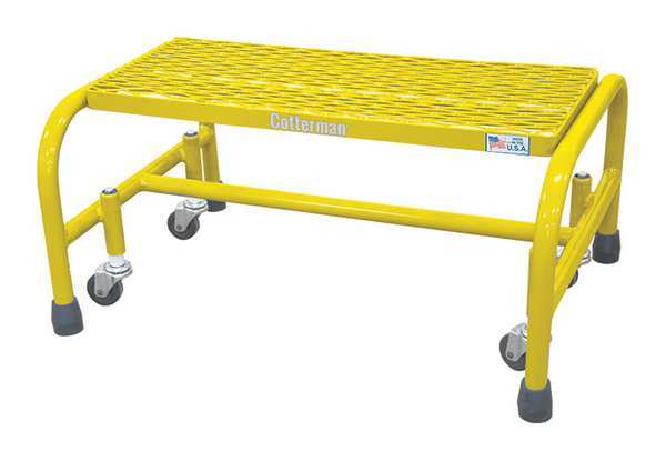 SKU G0895719Categories Material HandlingDescription Step Stool Product Group Rolling Platform, Number of Steps 1, Overall Height 12 in, Material Steel, Load Capacity 450 lb, Top Step Height 12 in, Top Step Depth 7 in, Bottom Width 27 in, Base Depth 19 in, Color Yellow, Finish Powder Coated, Standards OSHA 1910.29 and ANSI A14.7, Ladder Actuation Spring-Loaded Casters, Step Tread Serrated, Step Width 24 in$222.49 / eachWeb price