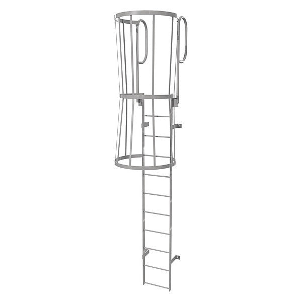 SKU G2232441Categories Material HandlingDescription Fixed Ladder with Safety Cage, Walk-Thru Included Yes, Exit Top, Overall Height 14 ft, Overall Width 36 in, Material Steel, Load Capacity 500 lb, Number of Steps 11, Top Step Height 10 ft, Rung Dia. 3/4 in, Rung/Step Spacing 12 in, Step Width 18 in, Finish Gray Powder Coated, Standards OSHA and ANSI, Manufacturers Warranty Length 1 yrgraingerSKU: 25NY98, mscSKU: , zoro_no: G2232441, mongo_id: 65bbea4a22d7a989a99a61ab