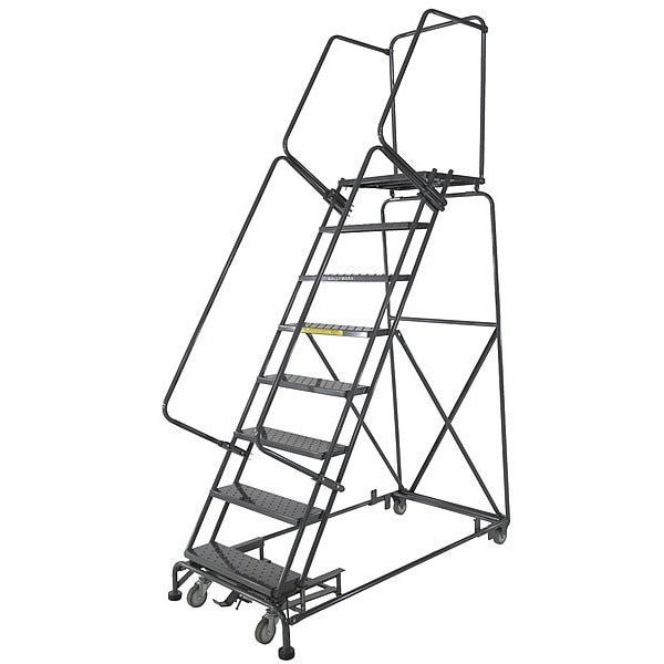 SKU G5207268Categories Material HandlingDescription Rolling Ladder, Material Steel, Platform Height 80 in, Handrails Included Yes, Handrail Height 30 in, Overall Height 113 in, Number of Steps 8, Assembled, Load Capacity 450 lb, Step Tread Expanded Metal, Platform Depth 21 in, Platform Width 24 in, Bottom Width 32 in, Base Depth 68 in, Overall Width 32 in, Climbing Angle 59 Degrees , Step Depth 7 in, Step Width 24 in, Ladder Actuation Weight Activated Step Lock, Finish Powder Coated, Color Gray, Standards ANSI, OSHAgraingerSKU: 41LF77, mscSKU: , zoro_no: G5207268, mongo_id: 65bbea4a22d7a989a99a61c1