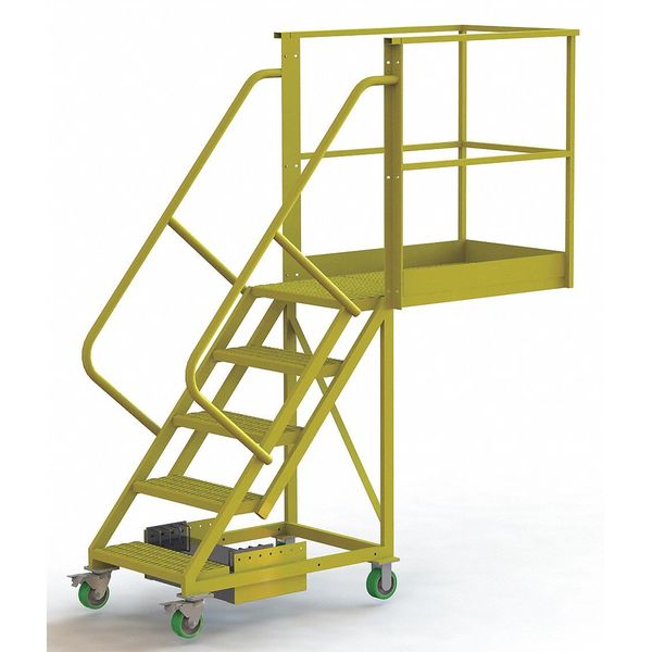 SKU G9957753Categories Material HandlingDescription Unsupported, Cantilever Rolling Ladder, Material Steel, Unassembled, Handrails Included Yes, Platform Height 50 in, Platform Width 24 in, Platform Depth 40 in, Overall Height 92 in, Load Capacity 300 lb, Handrail Height 42 in, Bottom Width 30 in, Base Depth 84 in, Number of Steps 5, Climbing Angle 50 Degrees , Ladder Actuation Locking Casters, Step Depth 8 1/2 in, Step Width 24 in, Step Tread Perforated, Finish Powder Coated, Color Yellow, Standards OSHA 1910.29 and ANSI A14.7graingerSKU: 15E998, mscSKU: , zoro_no: G9957753, mongo_id: 65bbea4a22d7a989a99a61a7