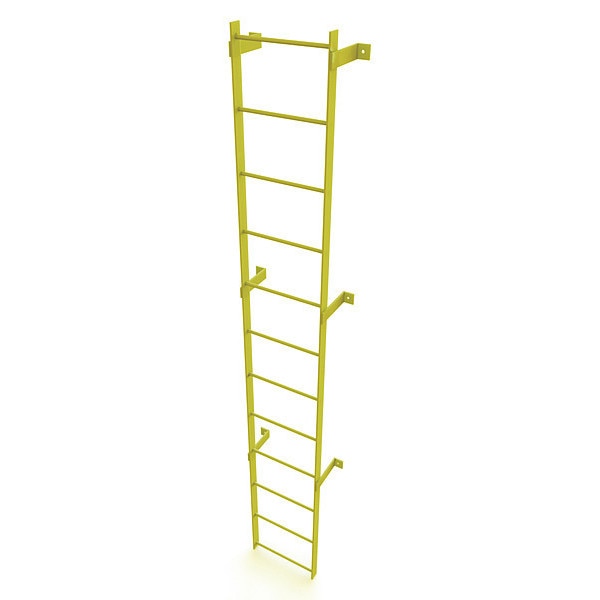 11 ft. Ladder, Steel, Standard Fixed, 12-Rung, Steel, 12 Steps, Safety Yellow FinishSKU G2281592Categories Material HandlingDescription Fixed Ladder, Walk-Thru Included No, Exit Top, Overall Height 12 ft, Overall Width 25 in, Material Steel, Load Capacity 500 lb, Number of Steps 12, Top Step Height 11 ft, Rung Dia. 3/4 in, Rung/Step Spacing 12 in, Step Width 18 in, Finish Safety Yellow, Standards ANSI; OSHA Compliant, Manufacturers Warranty Length 1 yrgraingerSKU: 231D87, mscSKU: , zoro_no: G2281592, mongo_id: 65bbea4a22d7a989a99a61a5