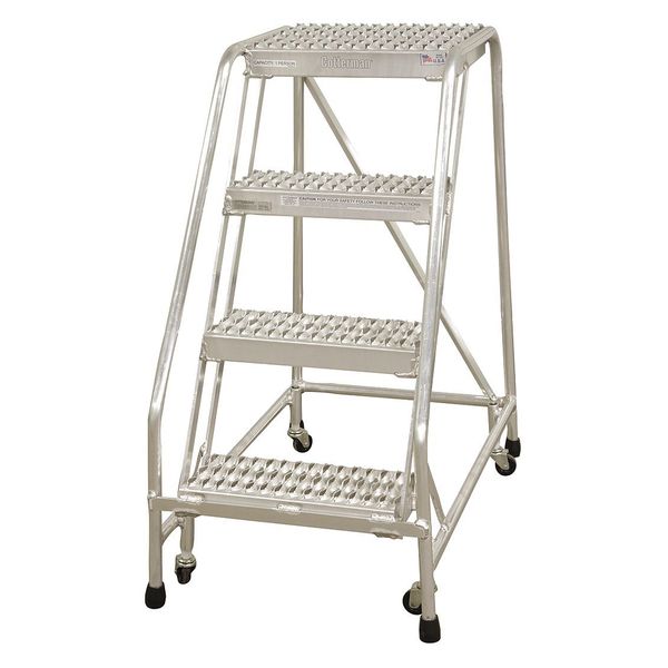 40 in H Aluminum Rolling Ladder, 4 StepsSKU G2155758Categories Material HandlingDescription Rolling Ladder, Material Aluminum, Platform Height 40 in, Handrails Included No, Overall Height 40 in, Number of Steps 4, Assembled, Load Capacity 350 lb, Step Tread Ribbed, Platform Depth 14 in, Platform Width 24 in, Bottom Width 30 in, Base Depth 36 in, Overall Width 30 in, Climbing Angle 59 Degrees , Step Depth 7 in, Step Width 24 in, Ladder Actuation Spring-Loaded Casters, Finish Aluminum Acid Brightened, Color Silver, Standards ANSI, OSHA, Includes Ladder Instructions, Rear Exit NograingerSKU: 45CJ71, mscSKU: , zoro_no: G2155758, mongo_id: 65bbea4a22d7a989a99a61fe