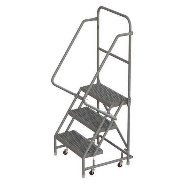 60 in H Steel Tilt and Roll Ladder, 3 StepsSKU G0999367Categories Material HandlingDescription Tilt and Roll Ladder, Material Steel, Platform Height 30 in, Handrails Included Yes, Handrail Height 30 in, Overall Height 60 in, Number of Steps 3, Assembled, Load Capacity 450 lb, Step Tread Perforated, Platform Depth 20 in, Platform Width 16 in, Bottom Width 20 in, Base Depth 41 in, Overall Width 20 in, Climbing Angle 59 Degrees , Step Depth 7 in, Step Width 16 in, Ladder Actuation None, Finish Powder Coated, Color Gray, Standards ANSI, OSHA, Includes Removable Rear Chain, Rear Exit YesgraingerSKU: 21VC03, mscSKU: , zoro_no: G0999367, mongo_id: 65bbea4a22d7a989a99a6202