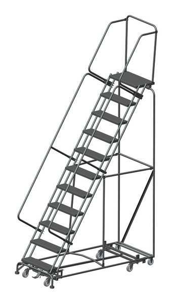 143 in H Steel Rolling Ladder, 11 StepsSKU G7325985Categories Material HandlingDescription Rolling Ladder, Material Steel, Platform Height 110 in, Handrails Included Yes, Handrail Height 30 in, Overall Height 143 in, Number of Steps 11, Unassembled, Load Capacity 450 lb, Step Tread Perforated, Platform Depth 14 in, Platform Width 24 in, Bottom Width 32 in, Base Depth 80 in, Overall Width 32 in, Climbing Angle 59 Degrees , Step Depth 7 in, Step Width 24 in, Ladder Actuation Weight Activated Step Lock, Finish Powder Coated, Color Gray, Standards ANSI, OSHAgraingerSKU: 9EVY1, mscSKU: , zoro_no: G7325985, mongo_id: 65bbea4a22d7a989a99a61cc