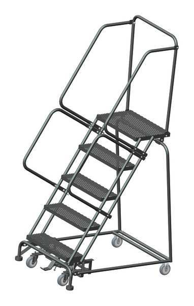 83 in H Steel Rolling Ladder, 5 StepsSKU G7304398Categories Material HandlingDescription Rolling Ladder, Material Steel, Platform Height 50 in, Handrails Included Yes, Handrail Height 30 in, Overall Height 83 in, Number of Steps 5, Unassembled, Load Capacity 450 lb, Step Tread Expanded Metal, Platform Depth 14 in, Platform Width 24 in, Bottom Width 32 in, Base Depth 43 in, Overall Width 32 in, Climbing Angle 59 Degrees , Step Depth 7 in, Step Width 24 in, Ladder Actuation Weight Activated Step Lock, Finish Powder Coated, Color Gray, Standards ANSI, OSHAgraingerSKU: 9LG30, mscSKU: , zoro_no: G7304398, mongo_id: 65bbea4a22d7a989a99a61c8
