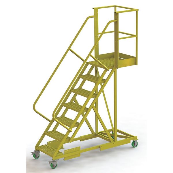 SKU G9958182Categories Material HandlingDescription Supported, Cantilever Rolling Ladder, Material Steel, Unassembled, Handrails Included Yes, Platform Height 70 in, Platform Width 24 in, Platform Depth 20 in, Overall Height 112 in, Load Capacity 300 lb, Handrail Height 42 in, Bottom Width 41 in, Base Depth 81 in, Number of Steps 7, Climbing Angle 50 Degrees , Ladder Actuation Locking Casters, Step Depth 10 in, Step Width 24 in, Step Tread Serrated, Finish Powder Coated, Color Yellow, Standards OSHA 1910.29 and ANSI A14.7graingerSKU: 15E955, mscSKU: , zoro_no: G9958182, mongo_id: 65bbea4a22d7a989a99a61ac