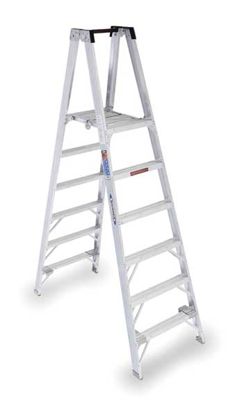 SKU G2121061Categories Material HandlingDescription Twin Platform Stepladder, Ladder Height 8 ft, Platform Width 12 3/4 in, Platform Depth 22 in, Platform Height 6 ft, Load Capacity 300 lb, Bottom Width 28 1/4 in, Base Spread 65 1/4 in, Material Aluminum, Series PT370, Number of Steps 6, Step Depth 3 in, Step Tread Ribbed, Rung/Step Spacing 12 in, ANSI Type IA, Includes A Safety Guard Rail, Pinch Proof Platform, Slip Resistant Foot Pads, Slip Resistant Traction Tred Steps, Standards ANSI, Net Weight 32 lbgraingerSKU: 3AZY8, mscSKU: , zoro_no: G2121061, mongo_id: 65bbea4a22d7a989a99a618e