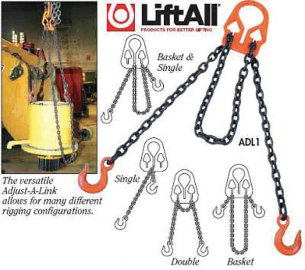 SKU G6819391Categories Material HandlingDescription Chain Sling, Grade 80, Number of Sling Legs 2, Chain Size 1/2 in, Sling Capacity @ 45 Degrees 17,000 lb, Sling Capacity @ 60 Degrees 20,800 lb, Sling Type Adjustable, Control Plate, Sling Hook, Hook Opening 1 25/32 in, Master Link/Bail Overall Height 13 1/2 in, Master Link/Bail Opening Height 8 3/8 in, Master Link/Bail Opening Width 5 3/8 in, Color Black, Yellow, Finish Chain Black Coating, Fittings Powder-Coated, Sling Length 14 ft, Standards ASME B30.9, NACM, OSHA 1910.184;graingerSKU: 3YCY1, mscSKU: 89751770, zoro_no: G6819391, mongo_id: 65bbea4122d7a989a99a48bf