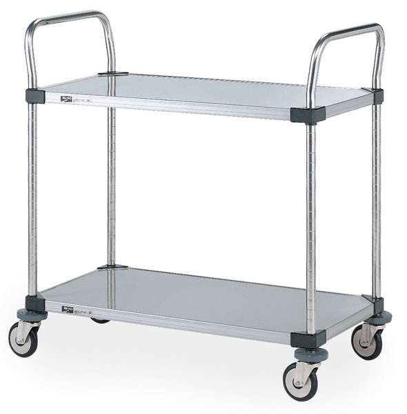 Stainless Steel Corrosion-Resistant Utility Cart with Flush Metal Shelves, (2) Raised, 2 Shelves