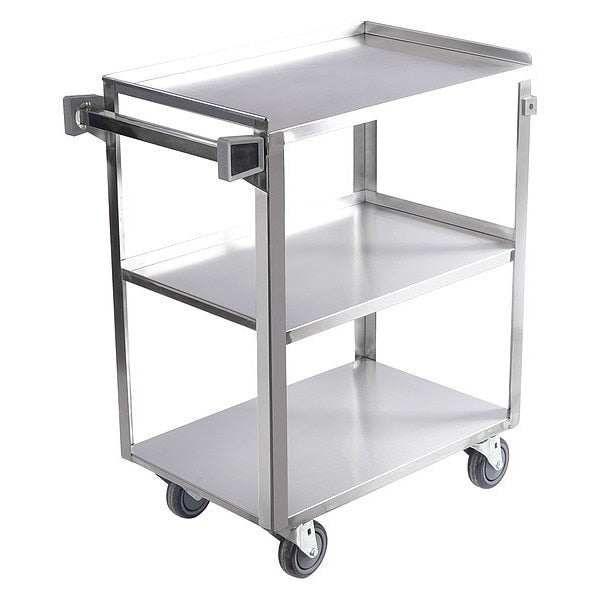 Utility Cart, No Handle, 300 lbSKU G500488312Categories Material HandlingDescription Utility Cart, Load Capacity 300 lb, Stainless Steel Material, 22 ga Gauge, Polished Finish, Silver Color, Overall Length 31 in, Overall Width 18 1/2 in, Capacity per Shelf 100 lb, Distance Between Shelves 12 5/8 in, Shelf Length 27 19/32 in, Shelf Width 17 5/8 in, Distance Between Middle and Bottom Shelf 12 5/8 in, Distance Between Top and Middle Shelf 12 1/2 in, Top Shelf Height 32 1/8 in, Assembled/Unassembled Assembled$342.61 / eachWeb price -