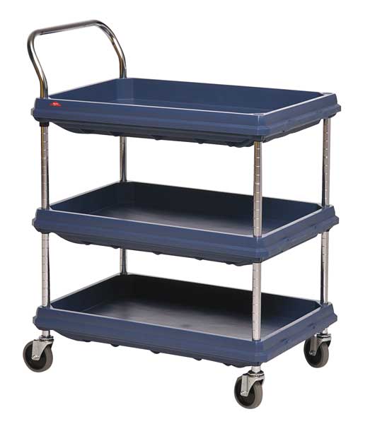 High Density Polyethylene (Shelf) Utility Cart with Deep Lipped Plastic Shelves, Raised, 3 ShelvesSKU G3816897Categories Material HandlingDescription Utility Cart with Deep Lipped Plastic Shelves, Number of Shelves 3, Lip Style 4-Sided Lipped, Load Capacity 400 lb, Shelf Length 33 3/4 in, Shelf Width 21 1/2 in, Top Shelf Height 33 1/4 in, Distance Between Shelves 11 in, Distance Between Top and Middle Shelf 11 in, Distance Between Middle and Bottom Shelf 11 in, Handle Type Raised, Handle Height 41 in, Caster Brake Type No Brake Included, Caster Wheel/Tread Material Thermoplastic Rubber, Caster Wheel Dia. 4 ingraingerSKU: 8DH66, mscSKU: , zoro_no: G3816897, mongo_id: 65bbe9c522d7a989a9977f72