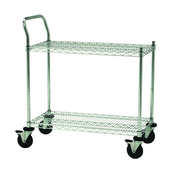 Wire Utility Cart, SglHdl, 2-Shlf, 18x30x40