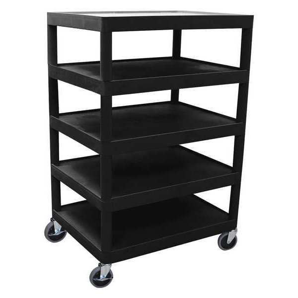 Injection Molded Thermoplastic Resin Utility Cart, Five Flat Shelf, 5 Shelves, 300 lb