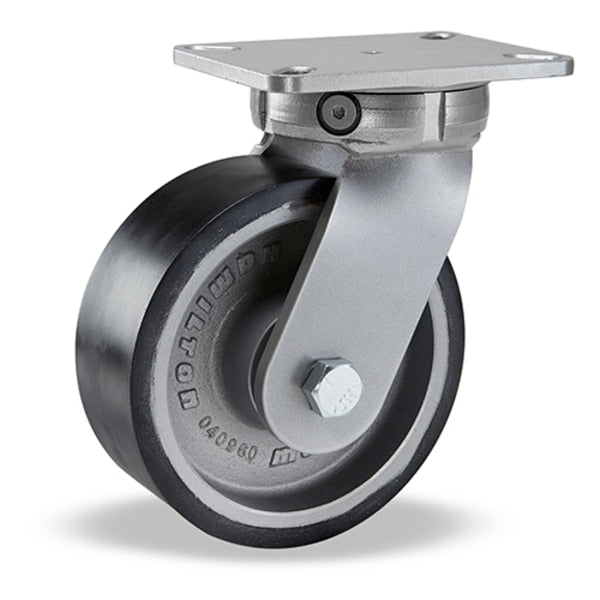 Swivel Plate Caster, Rubber, 8 in., 700 lb.