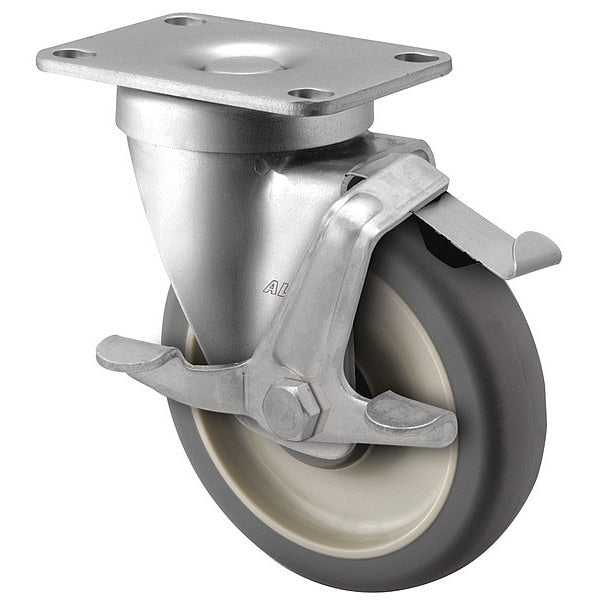 5" X 1-1/4" Non-Marking Polyurethane Swivel Caster, Face Contact Brake, Loads Up To 250 lb