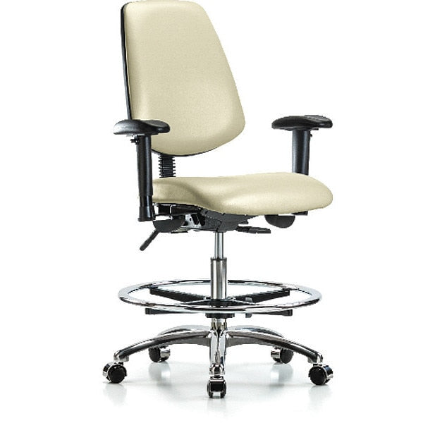 Bench Chair, Vinyl, Med, Bk, CF, Cast, Wht, Caster Type: Rolling