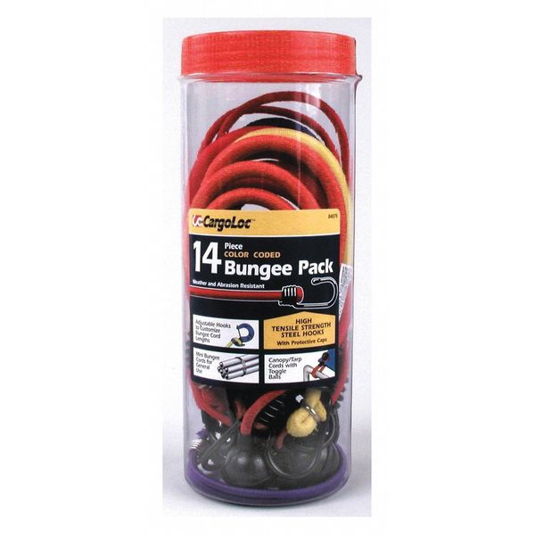 Bungee Cords, Assortment, 14 pcs.SKU G1154795Categories Material HandlingDescription Bungee Cords,Assortment,14 pcs.$15.19 / eachWeb price -