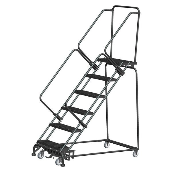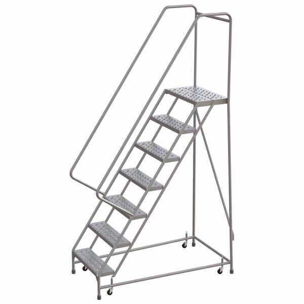 103 in H Steel Rolling Ladder, 7 StepsSKU G5207450Categories Material HandlingDescription Rolling Ladder, Material Steel, Platform Height 70 in, Handrails Included Yes, Handrail Height 30 in, Overall Height 103 in, Number of Steps 7, Unassembled, Load Capacity 450 lb, Step Tread Serrated, Platform Depth 21 in, Platform Width 24 in, Bottom Width 32 in, Base Depth 62 in, Overall Width 32 in, Climbing Angle 59 Degrees , Step Depth 7 in, Step Width 24 in, Ladder Actuation Weight Activated Step Lock, Finish Powder Coated, Color Gray, Standards ANSI, OSHAgraingerSKU: 41LF50, mscSKU: , zoro_no: G5207450, mongo_id: 65bbe98822d7a989a995e52c