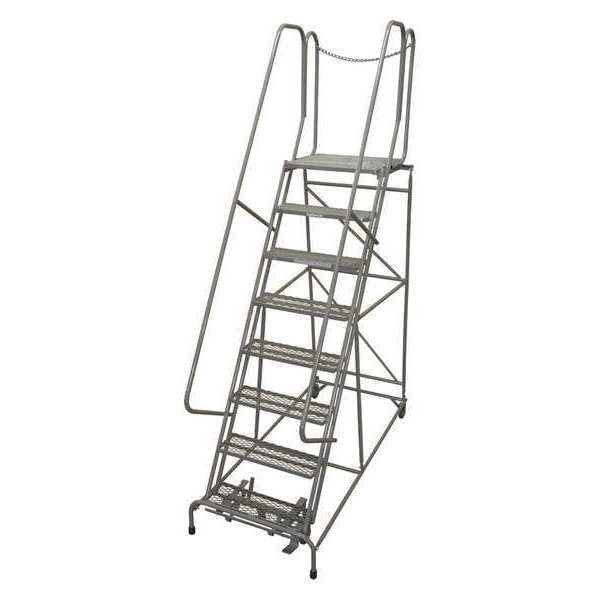 SKU G3493327Categories Material HandlingDescription Rolling Ladder, Material Steel, Platform Height 80 in, Handrails Included Yes, Handrail Height 30 in, Overall Height 110 in, Number of Steps 8, Assembled, Load Capacity 450 lb, Step Tread Serrated, Platform Depth 20 in, Platform Width 24 in, Bottom Width 32 in, Base Depth 110 in, Overall Width 32 in, Climbing Angle 59 Degrees , Step Depth 7 in, Step Width 24 in, Ladder Actuation Foot Activated Step Lock, Finish Powder Coated, Color Gray, Standards ANSI, OSHA, Rear Exit YesgraingerSKU: 21UT96, mscSKU: , zoro_no: G3493327, mongo_id: 65bbe98822d7a989a995e55b