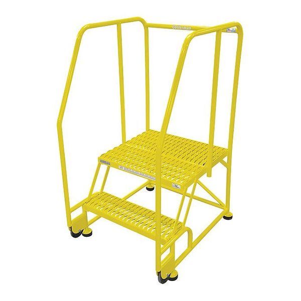 50 in H Steel Tilt and Roll Ladder, 2 StepsSKU G0999656Categories Material HandlingDescription Tilt and Roll Ladder, Material Steel, Platform Height 20 in, Handrails Included Yes, Handrail Height 30 in, Overall Height 50 in, Number of Steps 2, Assembled, Load Capacity 450 lb, Step Tread Perforated, Platform Depth 20 in, Platform Width 24 in, Bottom Width 34 in, Base Depth 28 in, Overall Width 28 in, Climbing Angle 59 Degrees , Step Depth 7 in, Step Width 24 in, Ladder Actuation None, Finish Powder Coated, Color Yellow, Standards ANSI, OSHA, Rear Exit NograingerSKU: 21VA66, mscSKU: , zoro_no: G0999656, mongo_id: 65bbe98822d7a989a995e576