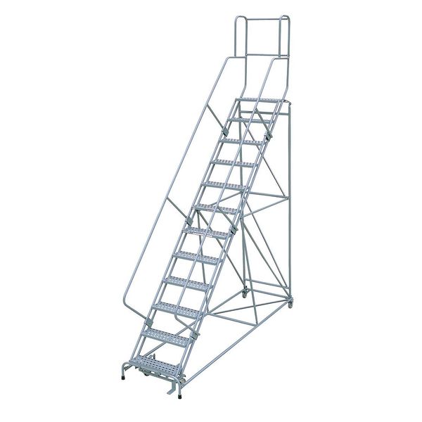 162 in H Steel Rolling Ladder, 12 StepsSKU G2156205Categories Material HandlingDescription Rolling Ladder, Material Steel, Platform Height 120 in, Handrails Included Yes, Handrail Height 42 in, Overall Height 162 in, Number of Steps 12, Unassembled, Load Capacity 450 lb, Step Tread Perforated, Platform Depth 24 in, Platform Width 24 in, Bottom Width 32 in, Base Depth 128 in, Overall Width 32 in, Climbing Angle 50 Degrees , Step Depth 7 in, Step Width 24 in, Ladder Actuation Foot Activated Step Lock, Finish Powder Coated, Color Gray, Standards ANSI, OSHAgraingerSKU: 45CJ15, mscSKU: , zoro_no: G2156205, mongo_id: 65bbe98822d7a989a995e577
