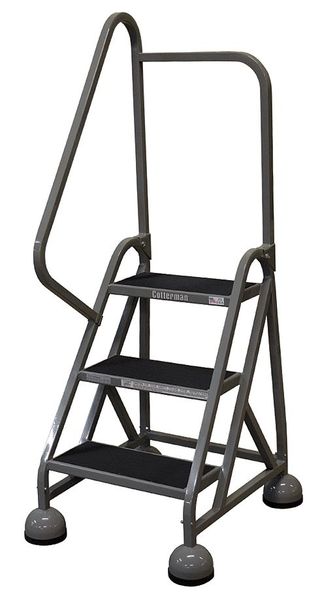 57 in H Steel Rolling Ladder, 3 StepsSKU G6249232Categories Material HandlingDescription Rolling Ladder, Material Steel, Platform Height 27 in, Handrails Included Yes, Handrail Height 30 in, Overall Height 57 in, Number of Steps 3, Unassembled, Load Capacity 450 lb, Step Tread Antislip Vinyl, Platform Depth 14 in, Platform Width 16 in, Bottom Width 24 in, Base Depth 32 in, Overall Width 24 in, Climbing Angle 59 Degrees , Step Depth 8 in, Step Width 16 in, Ladder Actuation Weight Activated Step Lock, Finish Powder Coated, Color Gray, Standards ANSI, OSHA, Includes Left HandrailgraingerSKU: 6MXF6, mscSKU: , zoro_no: G6249232, mongo_id: 65bbe98822d7a989a995e55a