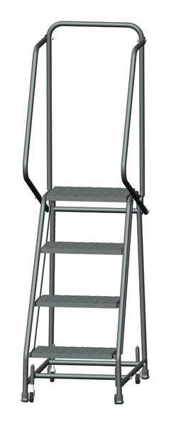 70 in H Steel Rolling Ladder, 4 StepsSKU G9929044Categories Material HandlingDescription Rolling Ladder, Material Steel, Platform Height 40 in, Handrails Included Yes, Handrail Height 30 in, Overall Height 70 in, Number of Steps 4, Assembled, Load Capacity 450 lb, Step Tread Perforated, Platform Depth 24 in, Platform Width 16 in, Bottom Width 20 in, Base Depth 52 in, Overall Width 20 in, Climbing Angle 50 Degrees , Step Depth 7 in, Step Width 16 in, Ladder Actuation Weight Activated Step Lock, Finish Powder Coated, Color Gray, Standards ANSI, OSHA, Includes 1 in Crutch TipsgraingerSKU: 20Z477, mscSKU: , zoro_no: G9929044, mongo_id: 65bbe98822d7a989a995e546