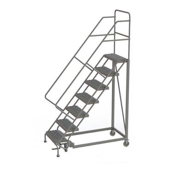 SKU G0978306Categories Material HandlingDescription Rolling Ladder, Material Steel, Platform Height 70 in, Handrails Included Yes, Handrail Height 36 in, Overall Height 106 in, Number of Steps 7, Unassembled, Load Capacity 450 lb, Step Tread Perforated, Platform Depth 17 in, Platform Width 24 in, Bottom Width 35 in, Base Depth 74 in, Overall Width 35 in, Climbing Angle 50 Degrees , Step Depth 8 1/2 in, Step Width 24 in, Ladder Actuation Foot Activated Step Lock, Finish Powder Coated, Color Gray, Standards ANSI, OSHA, Includes 2-1/2 in Rubber PadsgraingerSKU: 25NV46, mscSKU: , zoro_no: G0978306, mongo_id: 65bbe9f322d7a989a9989799