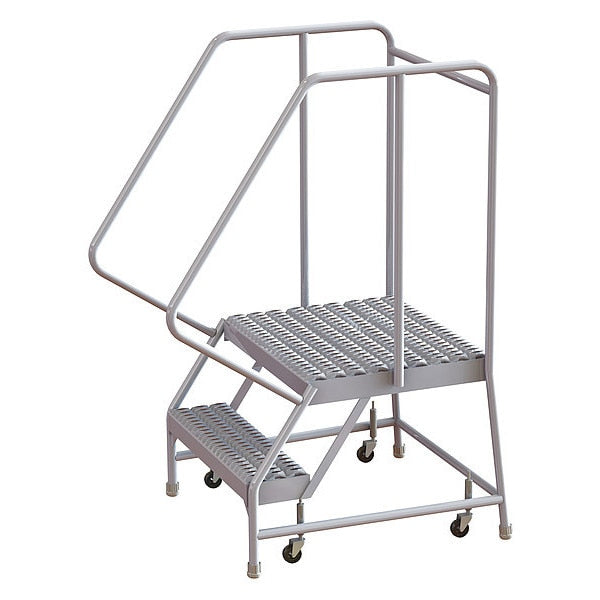SKU G0979767Categories Material HandlingDescription Rolling Ladder, Material Aluminum, Platform Height 20 in, Handrails Included Yes, Handrail Height 32 in, Overall Height 52 in, Number of Steps 2, Assembled, Load Capacity 350 lb, Step Tread Serrated, Platform Depth 21 in, Platform Width 16 in, Bottom Width 20 in, Base Depth 30 in, Overall Width 20 in, Climbing Angle 56 Degrees , Step Depth 7 in, Step Width 16 in, Ladder Actuation Spring-Loaded Casters, Finish Aluminum Mill, Color Aluminum, Standards ANSI, OSHA, Includes Crutch TipsgraingerSKU: 25NX79, mscSKU: , zoro_no: G0979767, mongo_id: 65bbe9f322d7a989a99897a2
