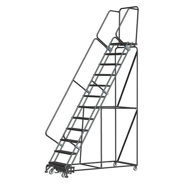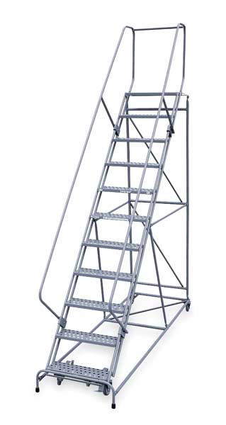 140 in H Steel Rolling Ladder, 11 StepsSKU G9852613Categories Material HandlingDescription Rolling Ladder, Material Steel, Platform Height 110 in, Handrails Included Yes, Handrail Height 30 in, Overall Height 140 in, Number of Steps 11, Unassembled, Load Capacity 800 lb, Step Tread Antislip Vinyl, Platform Depth 12 in, Platform Width 24 in, Bottom Width 32 in, Base Depth 106 in, Overall Width 32 in, Climbing Angle 59 Degrees , Step Depth 7 in, Step Width 24 in, Ladder Actuation Foot Activated Step Lock, Finish Powder Coated, Color Gray, Standards ANSI, OSHA, Rear Exit NograingerSKU: 6ZEX4, mscSKU: , zoro_no: G9852613, mongo_id: 65bbe9f322d7a989a99897dc