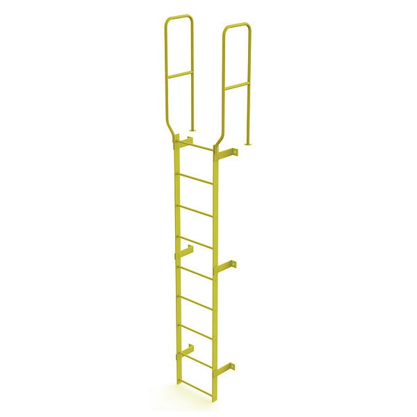 11 ft. 6" Ladder, Walk-Thru Fixed, Steel, 9-Rung, Steel, 9 Steps, Safety Yellow FinishSKU G2281820Categories Material HandlingDescription Fixed Ladder, Walk-Thru Included Yes, Exit Top, Overall Height 12 ft, Overall Width 28 in, Material Steel, Load Capacity 450 lb, Number of Steps 9, Top Step Height 8 ft, Rung Dia. 3/4 in, Rung/Step Spacing 12 in, Step Width 18 in, Finish Safety Yellow, Standards ANSI; OSHA Compliant, Includes 42 In. guardrails, Manufacturers Warranty Length 1 yrgraingerSKU: 231F02, mscSKU: , zoro_no: G2281820, mongo_id: 65bbe9cb22d7a989a997b24a