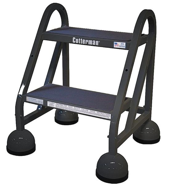 SKU G0895743Categories Material HandlingDescription Step Stool Product Group Rolling Step, Number of Steps 2, Overall Height 22 in, Material Steel, Load Capacity 450 lb, Top Step Height 18 in, Top Step Depth 8 in, Bottom Width 22 in, Base Depth 20 in, Color Black, Finish Powder Coated, Standards OSHA 1910.29 and ANSI A14.7, Ladder Actuation Spring-Loaded Casters, Step Tread Rubber Mat, Step Width 16 ingraingerSKU: , mscSKU: , zoro_no: G0895743, mongo_id: 65bbe9cb22d7a989a997b298