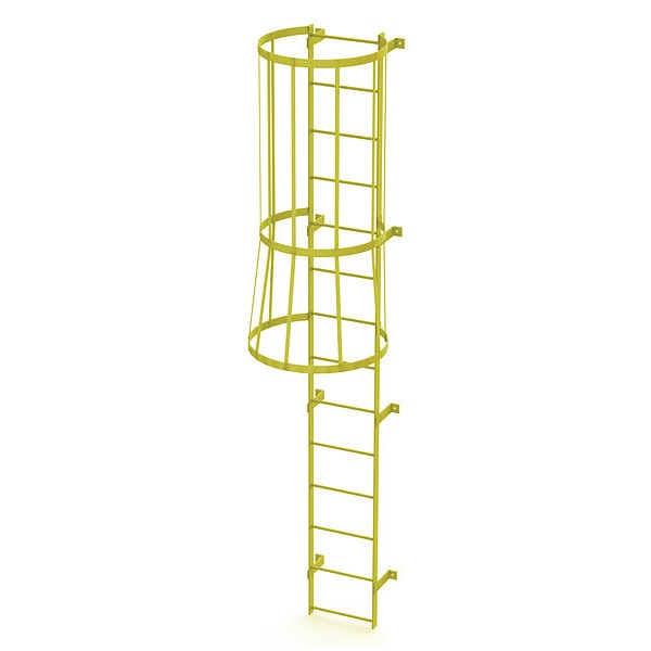 13 ft. Ladder, Standard Fixed Cage, Steel, 14-Rung, Steel, 14 Steps, Safety Yellow Finish