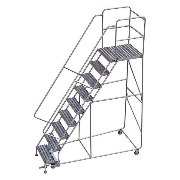 116 in H Steel Rolling Ladder, 8 StepsSKU G9904587Categories Material HandlingDescription Rolling Ladder, Material Steel, Platform Height 80 in, Handrails Included Yes, Handrail Height 36 in, Overall Height 116 in, Number of Steps 8, Unassembled, Load Capacity 600 lb, Step Tread Perforated, Platform Depth 10 in, Platform Width 24 in, Bottom Width 35 in, Base Depth 64 in, Overall Width 35 in, Climbing Angle 56 Degrees , Step Depth 7 in, Step Width 24 in, Ladder Actuation Foot Activated Step Lock, Finish Powder Coated, Color Gray, Standards ANSI, OSHA, Includes 2-1/2 in Rubber PadsgraingerSKU: 2NJV6, mscSKU: , zoro_no: G9904587, mongo_id: 65bbe9cb22d7a989a997b253