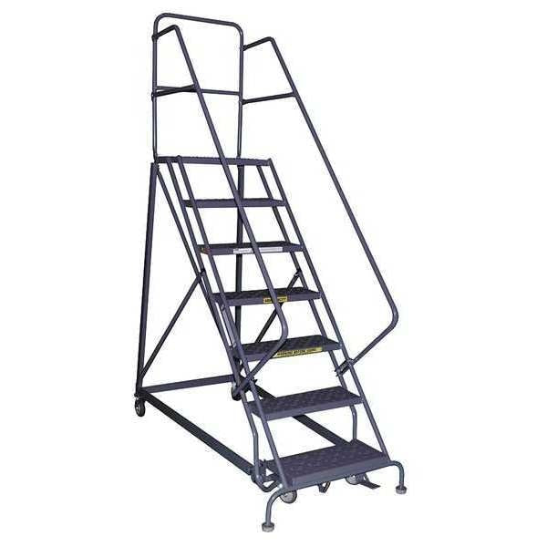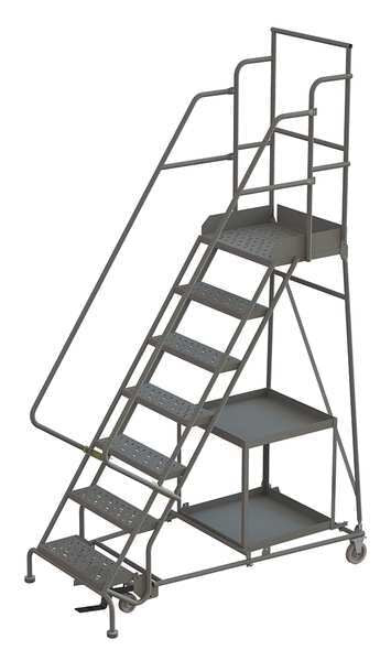 SKU G9869456Categories Material HandlingDescription Rolling Ladder, Material Steel, Platform Height 80 in, Handrails Included Yes, Handrail Height 36 in, Overall Height 116 in, Number of Steps 8, Unassembled, Load Capacity 600 lb, Step Tread Serrated, Platform Depth 17 in, Platform Width 24 in, Bottom Width 35 in, Base Depth 82 in, Overall Width 35 in, Climbing Angle 50 Degrees , Step Depth 8 1/2 in, Step Width 24 in, Ladder Actuation Foot Activated Step Lock, Finish Powder Coated, Color Gray, Standards ANSI, OSHA, Includes 2-1/2 in Rubber PadsgraingerSKU: 4RCP4, mscSKU: , zoro_no: G9869456, mongo_id: 65bbe9cb22d7a989a997b254