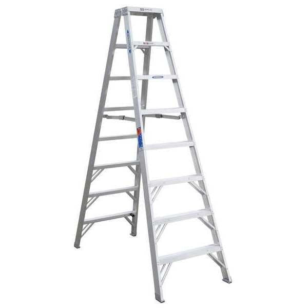 SKU G3050004Categories Material HandlingDescription Twin Stepladder, Material Aluminum, ANSI Type IA, Ladder Height 8 ft, Load Capacity 300 lb, Number of Steps 7, Base Spread 64 in, Bottom Width 28 1/4 in, Step Depth 3 in, Step Tread Ribbed, Series T370, Rung/Step Spacing 12 ingraingerSKU: 3AZY3, mscSKU: , zoro_no: G3050004, mongo_id: 65bbe9cb22d7a989a997b22d