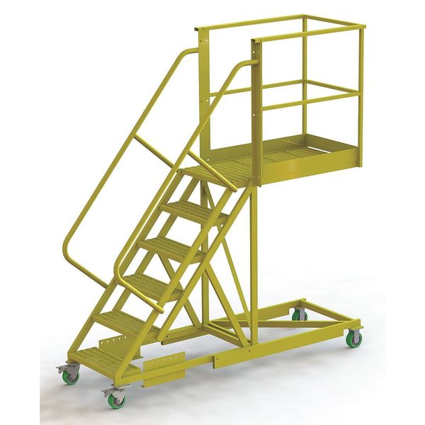 SKU G9957997Categories Material HandlingDescription Supported, Cantilever Rolling Ladder, Material Steel, Unassembled, Handrails Included Yes, Platform Height 60 in, Platform Width 24 in, Platform Depth 40 in, Overall Height 102 in, Load Capacity 300 lb, Handrail Height 42 in, Bottom Width 41 in, Base Depth 92 in, Number of Steps 6, Climbing Angle 50 Degrees , Ladder Actuation Locking Casters, Step Depth 10 in, Step Width 24 in, Step Tread Serrated, Finish Powder Coated, Color Yellow, Standards OSHA 1910.29 and ANSI A14.7graingerSKU: 15E974, mscSKU: , zoro_no: G9957997, mongo_id: 65bbe9cb22d7a989a997b23e