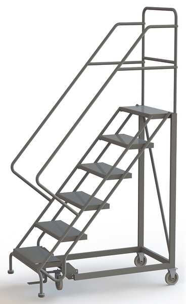 96 in H Steel Configurable Rolling Ladder, 6 StepsSKU G2229459Categories Material HandlingDescription Configurable Rolling Ladder, Material Steel, Platform Height 60 in, Handrails Included Yes, Handrail Height 36 in, Overall Height 96 in, Number of Steps 6, Unassembled, Load Capacity 450 lb, Step Tread Perforated, Platform Depth 17 in, Platform Width 24 in, Bottom Width 35 in, Base Depth 66 in, Overall Width 35 in, Climbing Angle 50 Degrees , Step Depth 8 1/2 in, Step Width 24 in, Ladder Actuation Foot Activated Step Lock, Finish Powder Coated, Color Gray, Standards ANSI, OSHAgraingerSKU: 29RJ50, mscSKU: , zoro_no: G2229459, mongo_id: 65bbe9cb22d7a989a997b239