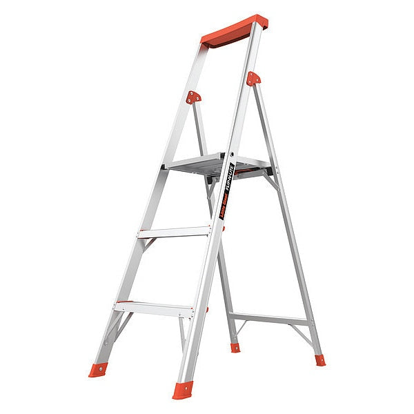SKU G4015654Categories Material HandlingDescription Platform Stepladder, Ladder Height 5 ft, Platform Width 13 in, Platform Depth 13 in, Platform Height 2 ft 9 in, Load Capacity 300 lb, Bottom Width 20 in, Base Spread 33 in, Material Aluminum, Series Flip-N-Lite, Number of Steps 3, Step Depth 3 in, Step Tread Ribbed, Rung/Step Spacing 12 in, ANSI Type IA, Includes Built in Comfort Step, Standards OSHA and ANSI 14.2, Net Weight 12 lbgraingerSKU: 6FJL9, mscSKU: 78299088, zoro_no: G4015654, mongo_id: 65bbe9cb22d7a989a997b2b5