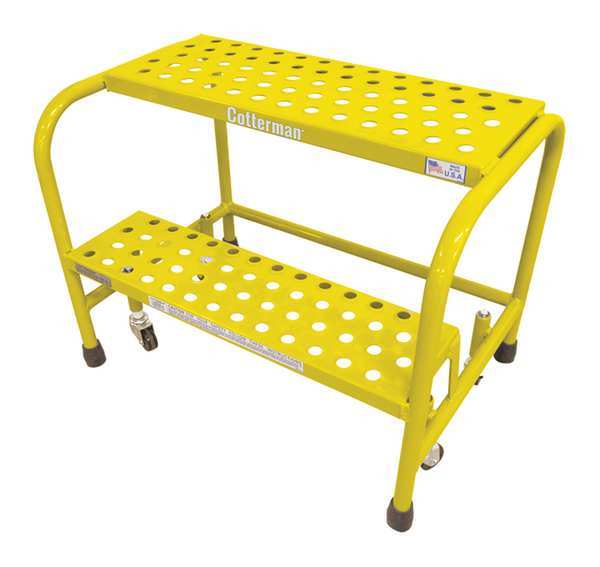 SKU G0896522Categories Material HandlingDescription Step Stool Product Group Rolling Step, Number of Steps 2, Overall Height 20 in, Material Steel, Load Capacity 450 lb, Top Step Height 20 in, Top Step Depth 7 in, Bottom Width 19 in, Base Depth 19 in, Color Yellow, Finish Powder Coated, Standards OSHA 1910.29 and ANSI A14.7, Ladder Actuation Spring-Loaded Casters, Step Tread Perforated, Step Width 16 ingraingerSKU: , mscSKU: , zoro_no: G0896522, mongo_id: 65bbe9cb22d7a989a997b296