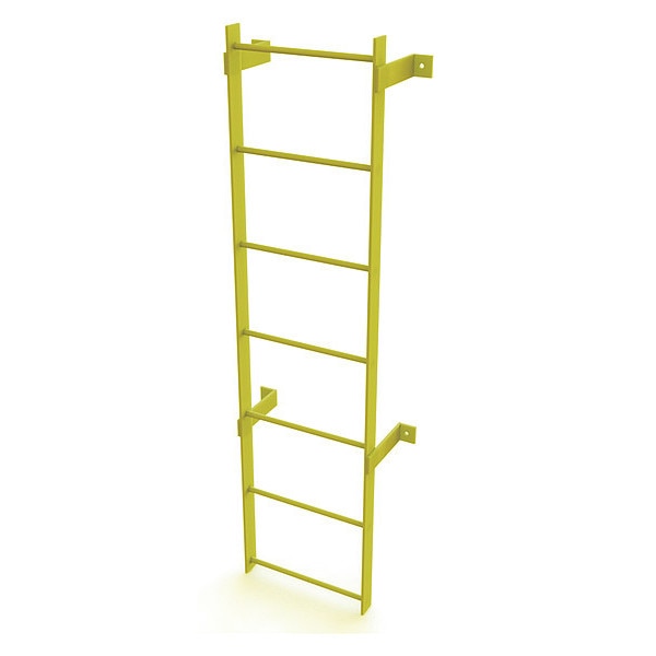 6 ft. Ladder, Steel, Standard Fixed, 7-Rung, Steel, 7 Steps, Safety Yellow FinishSKU G2281540Categories Material HandlingDescription Fixed Ladder, Walk-Thru Included No, Exit Top, Overall Height 7 ft, Overall Width 25 in, Material Steel, Load Capacity 500 lb, Number of Steps 7, Top Step Height 6 ft, Rung Dia. 3/4 in, Rung/Step Spacing 12 in, Step Width 18 in, Finish Safety Yellow, Standards ANSI; OSHA Compliant, Manufacturers Warranty Length 1 yrgraingerSKU: 231D82, mscSKU: , zoro_no: G2281540, mongo_id: 65bbe9cb22d7a989a997b24f