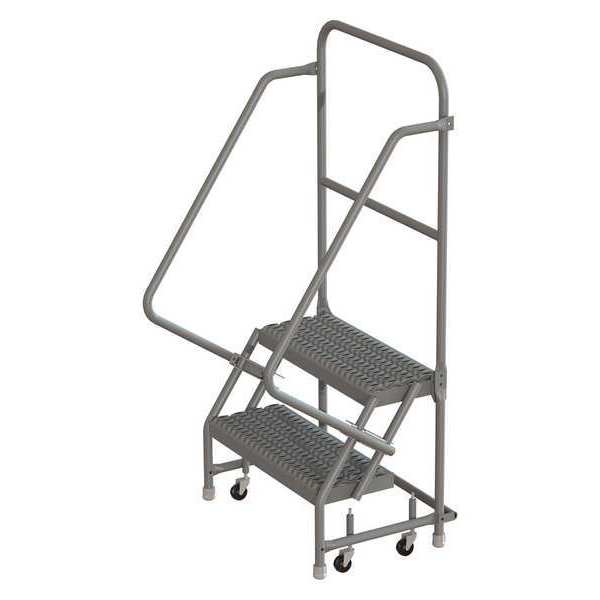 56 in H Steel Rolling Ladder, 2 StepsSKU G0978750Categories Material HandlingDescription Rolling Ladder, Material Steel, Platform Height 20 in, Handrails Included Yes, Handrail Height 36 in, Overall Height 56 in, Number of Steps 2, Unassembled, Load Capacity 450 lb, Step Tread Serrated, Platform Depth 10 in, Platform Width 24 in, Bottom Width 28 in, Base Depth 21 in, Overall Width 28 in, Climbing Angle 56 Degrees , Step Depth 7 in, Step Width 24 in, Ladder Actuation Spring-Loaded Casters, Finish Powder Coated, Color Gray, Standards ANSI, OSHA, Includes Crutch TipsgraingerSKU: 25NW18, mscSKU: , zoro_no: G0978750, mongo_id: 65bbe9cb22d7a989a997b244