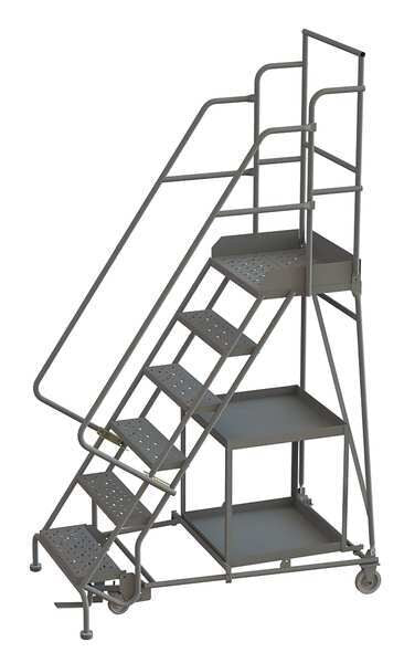 SKU G9900317Categories Material HandlingDescription Stock Picking Rolling Ladder, Material Steel, Platform Height 60 in, Handrails Included Yes, Handrail Height 36 in, Overall Height 96 in, Number of Steps 6, Unassembled, Load Capacity 450 lb, Step Tread Perforated, Platform Depth 20 in, Platform Width 24 in, Bottom Width 35 in, Base Depth 60 in, Overall Width 35 in, Climbing Angle 56 Degrees , Step Depth 7 in, Step Width 24 in, Ladder Actuation Foot Activated Step Lock, Finish Powder Coated, Color Gray, Standards ANSI, OSHAgraingerSKU: 31DW28, mscSKU: , zoro_no: G9900317, mongo_id: 65bbe9cb22d7a989a997b235