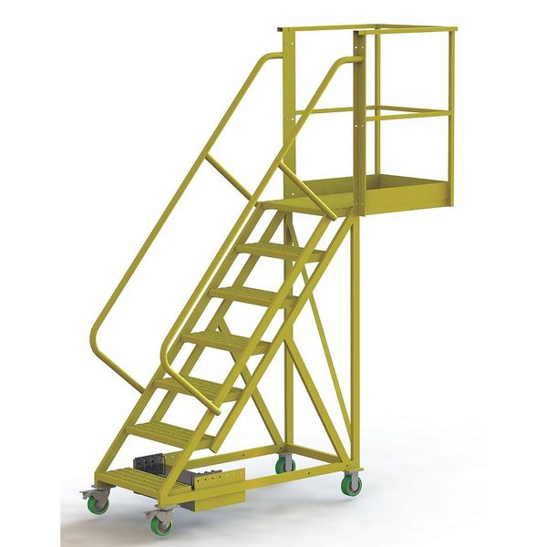 SKU G9957787Categories Material HandlingDescription Unsupported, Cantilever Rolling Ladder, Material Steel, Unassembled, Handrails Included Yes, Platform Height 70 in, Platform Width 24 in, Platform Depth 30 in, Overall Height 112 in, Load Capacity 300 lb, Handrail Height 42 in, Bottom Width 30 in, Base Depth 91 in, Number of Steps 7, Climbing Angle 50 Degrees , Ladder Actuation Locking Casters, Step Depth 10 in, Step Width 24 in, Step Tread Serrated, Finish Powder Coated, Color Yellow, Standards OSHA 1910.29 and ANSI A14.7graingerSKU: 15E995, mscSKU: , zoro_no: G9957787, mongo_id: 65bbe9cb22d7a989a997b245