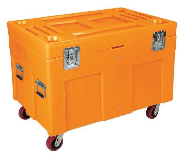 SKU G9845561Categories Material HandlingDescription Storage Cart, Color Orange, Handle Style Spring Loaded, Material Plastic, Overall Height 34 in, Overall Width 45 in, Overall Length 30 in, Volume Capacity 112.2 gal, Weight Capacity 850 lb, Mobility Mobile, Caster Type (4) Swivel, Caster Wheel Diameter 5 in, Closure Type Padlock, Lid Type Hinged, Shape RectangulargraingerSKU: 8TVG5, mscSKU: , zoro_no: G9845561, mongo_id: 65bbe9f322d7a989a9988660
