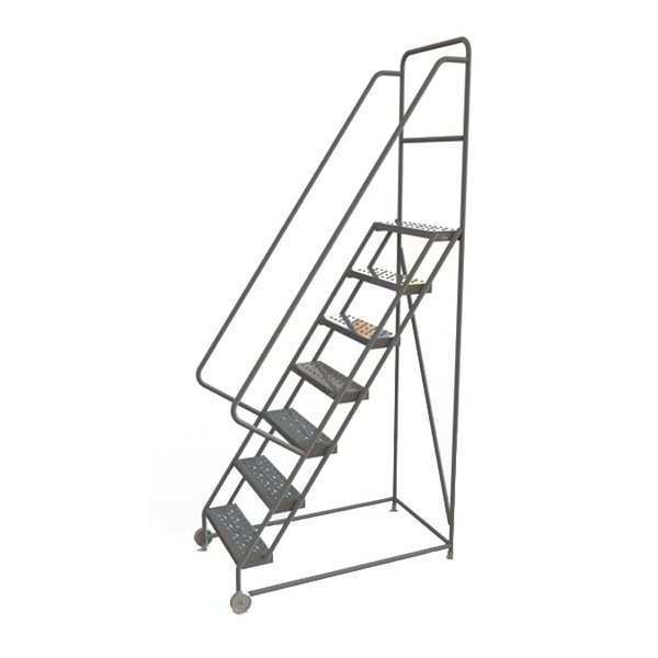 SKU G0978498Categories Material HandlingDescription Tilt and Roll Ladder, Material Steel, Platform Height 70 in, Handrails Included Yes, Handrail Height 36 in, Overall Height 106 in, Number of Steps 7, Unassembled, Load Capacity 450 lb, Step Tread Perforated, Platform Depth 10 in, Platform Width 24 in, Bottom Width 37 in, Base Depth 59 in, Overall Width 37 in, Climbing Angle 56 Degrees , Step Depth 7 in, Step Width 24 in, Ladder Actuation None, Finish Powder Coated, Color Gray, Standards ANSI, OSHA, Includes Crutch TipsgraingerSKU: 25NX20, mscSKU: , zoro_no: G0978498, mongo_id: 65bbe98022d7a989a995e521