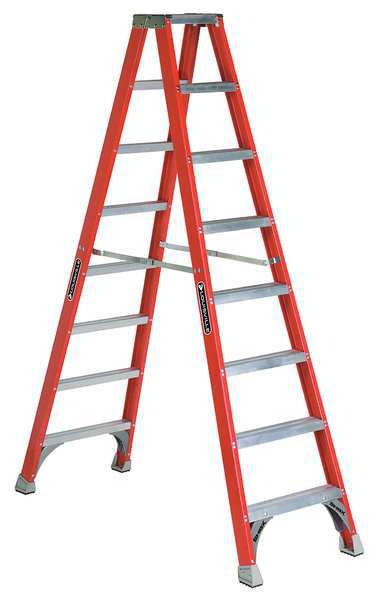 8 ft Fiberglass Twin StepladderSKU G2551367Categories Material HandlingDescription Twin Stepladder, Material Fiberglass, ANSI Type IA, Ladder Height 8 ft, Load Capacity 300 lb, Number of Steps 8, Base Spread 67 1/8 in, Bottom Width 25 3/4 in, Step Depth 3 in, Step Tread Ribbed, Series FM1500, Rung/Step Spacing 12 ingraingerSKU: 1CMU6, mscSKU: , zoro_no: G2551367, mongo_id: 65bbe9a522d7a989a996cc6a