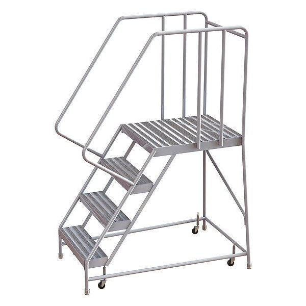 SKU G0977886Categories Material HandlingDescription Rolling Ladder, Material Aluminum, Platform Height 40 in, Handrails Included Yes, Handrail Height 32 in, Overall Height 72 in, Number of Steps 4, Assembled, Load Capacity 350 lb, Step Tread Ribbed, Platform Depth 28 in, Platform Width 16 in, Bottom Width 22 in, Base Depth 51 in, Overall Width 22 in, Climbing Angle 56 Degrees , Step Depth 7 in, Step Width 16 in, Ladder Actuation Spring-Loaded Casters, Finish Aluminum Mill, Color Aluminum, Standards ANSI, OSHA, Includes Crutch TipsgraingerSKU: 25NY02, mscSKU: , zoro_no: G0977886, mongo_id: 65bbe98022d7a989a995e50e